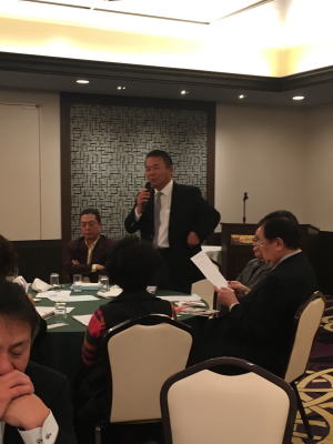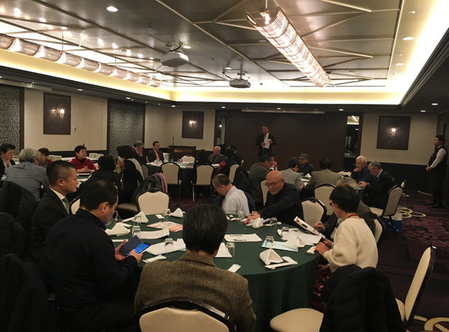| 【事務局だより】 令和元年度「東京天草郷友会」第3回幹事会開催 師走の12/1日(日)、御茶ノ水の東京ガーデンパレスに会長以下役員幹事35名が集り、今年度3回目の幹事会が行われました。 会は塚本幹事長の司会で進められ、冒頭、堺会長から11/13(水)開催された第2回東京天草ビジネス交流会協力のお礼、各諸活動への労い、次期活動の第3回のど自慢大会、創設120年を迎える記念総会への協力とお願い、今期一旦解散されたゴルフ大会復活の話があり、その後協議に入りました。先ず、議事その1は岩下事業部長から2/2(日)に行われる、のど自慢大会のアトラクションと各地域からの出場者働きかけとお願い、台風の影響で釣り大会が中止になった事。横田組織部長からビジネス交流会の報告、県人会主催で行われた天草会参加での若い会員確保について等。志茂女性部長からは1/19(日)・20(月)の一泊バス旅行の内容と参加依頼。続いて事務局から11月末現在の収支と今年度年会費入金増の件、会報「あまくさ」110号の進行状況報告。お仕舞いに本田アドバイザーからサークル活動・苓洲会について詳しい報告が行われました。 引き続き、議事その2は令和2年度第3回天草地域対抗のど自慢大会の決定事項(日程、場所)が報告され、審査委員、役割分担等が協議されました。 議事その3は令和2年度記念総会の決定事項(日程、場所)が発表され、総会内容の協議に入り、ご来賓の範囲、景品、ふるさとショップ売店、アトラクションのタレント等について協議され、役割分担は、4/5(日)幹事会の時、決定する事としました。 その後は昼食を兼ねた忘年会、会話に花が咲き、3時少し過ぎにお開きとなりました。 (事務局 坂川 武) |