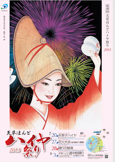 | 平成25年開催 | 第48回天草ほんどハイヤ祭り ・7月20日(土)天草子ハイヤ ・7月27日(土)花火大会(10,000発) ・7月28日(日)天草ハイヤ 踊りの競演 ・8月 3日(土)天草ハイヤ道中総踊り(2,500人規模) ![]() |